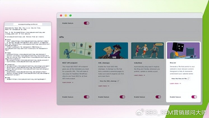 技術(shù) SEO 元素,例如用于上下文的站點(diǎn)地圖您添加的網(wǎng)站描述這為大型語(yǔ)言模型提供了網(wǎng)站摘要,以了解您的網(wǎng)站內(nèi)容以及哪些內(nèi)容最重要管理你的 llms.txt 文件該插件會(huì)自動(dòng)為您創(chuàng)建并維護(hù) llms.txt 文件,每周更新。